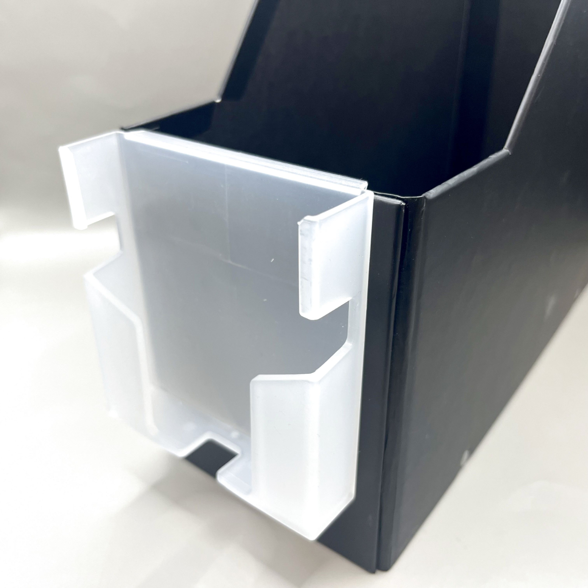 使用可能なファイルボックスサイズ:フチの厚さ5mm以内、深さ90mm以内