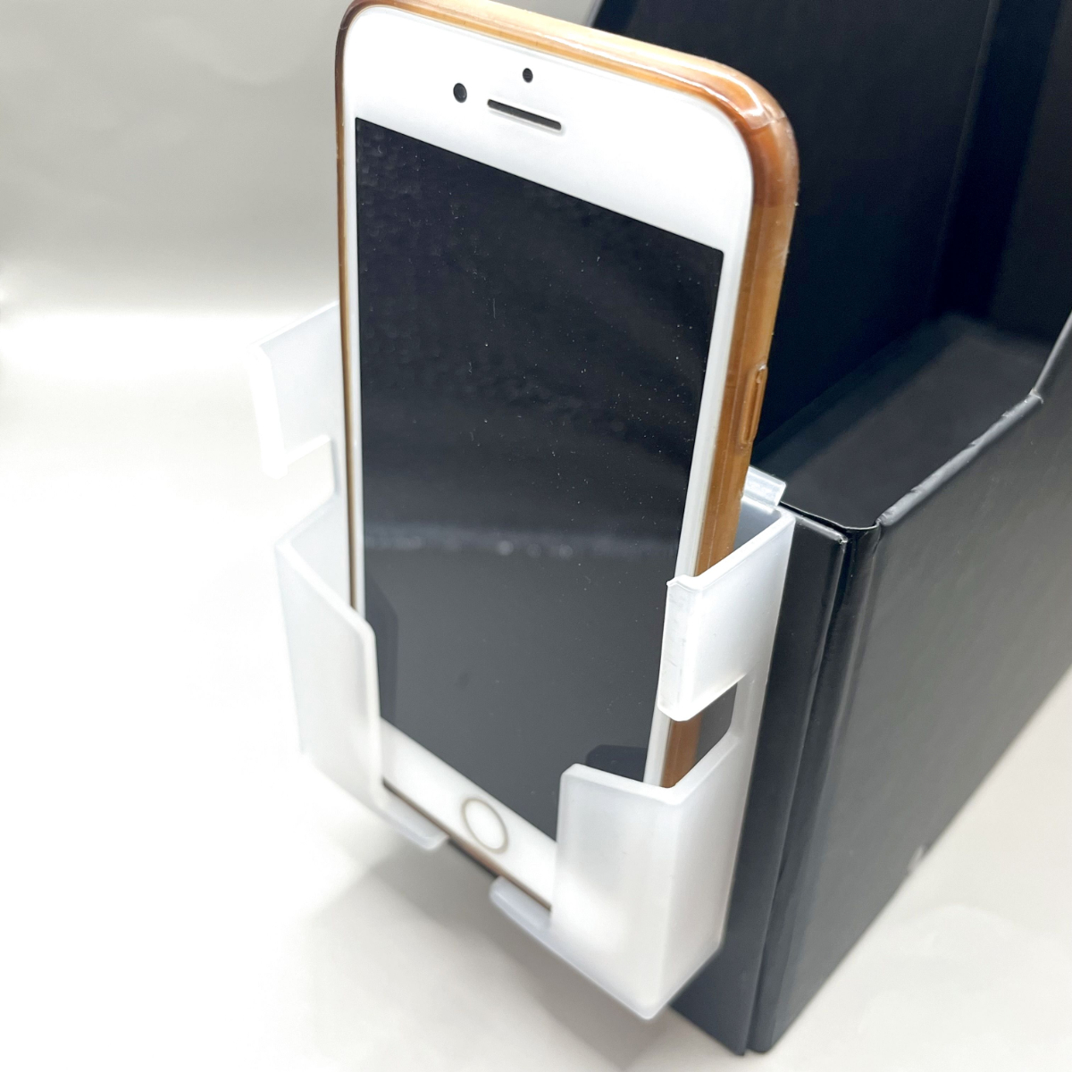 ファイルボックスに取り付けられる!シンプルなスマホスタンド