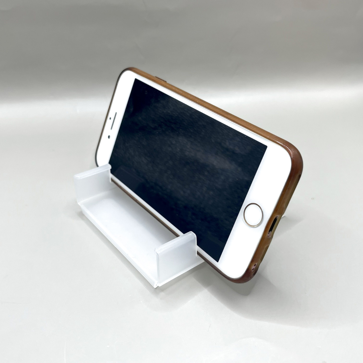 見た目はシンプルな半透明のポリプロピレン素材。無印良品っぽさのある生活感の出にくいスマホスタンドです。