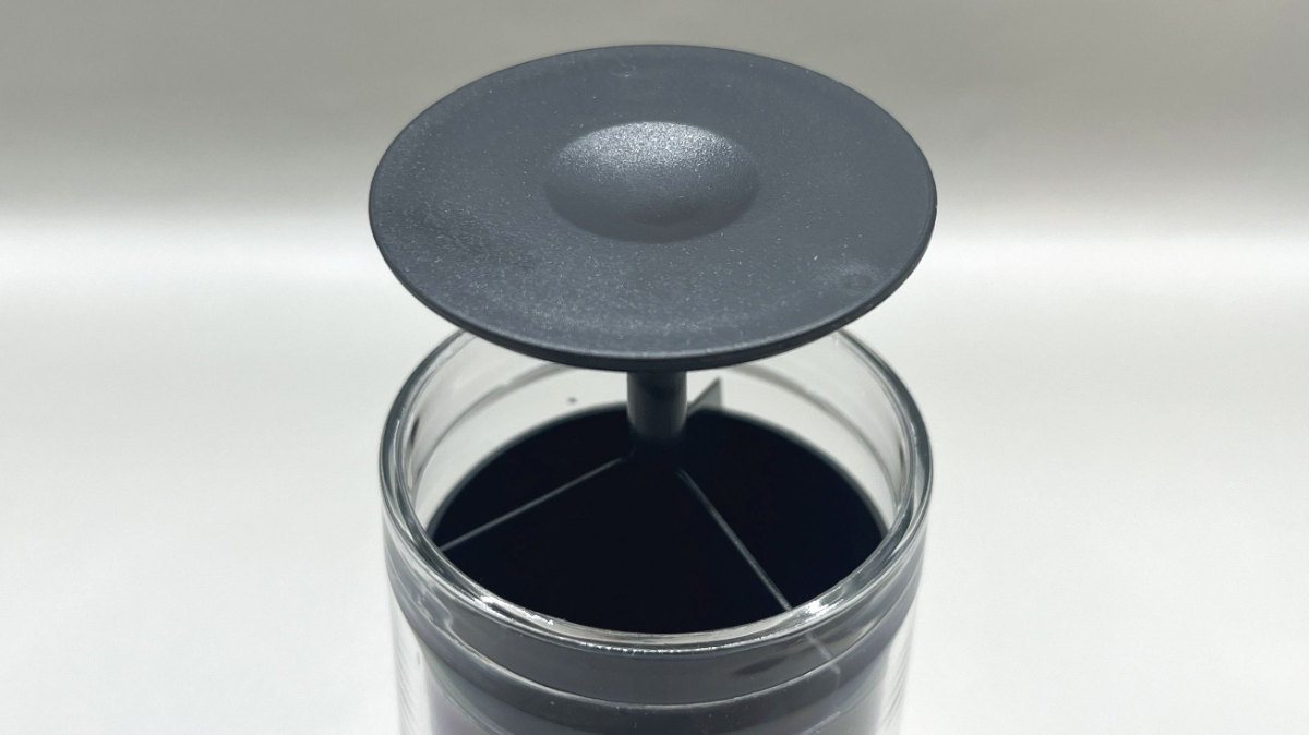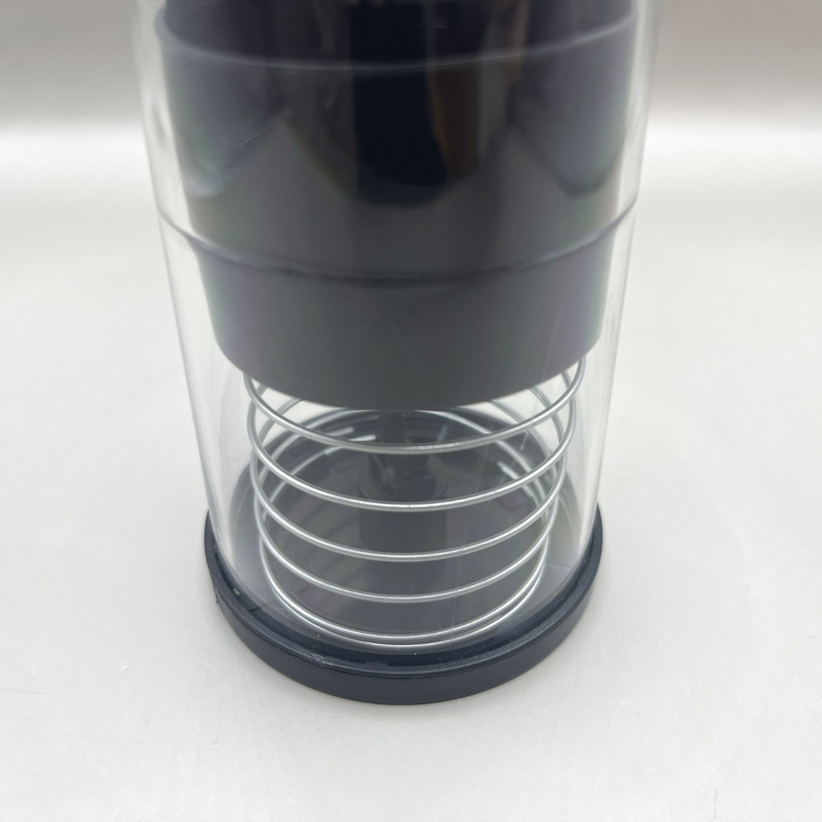 最大の特徴は、やっぱりプッシュ式というところ。ケースの中にはバネが入っていて、上のフタを軽く押すと中の容器がスッと持ち上がる仕組みになっています。