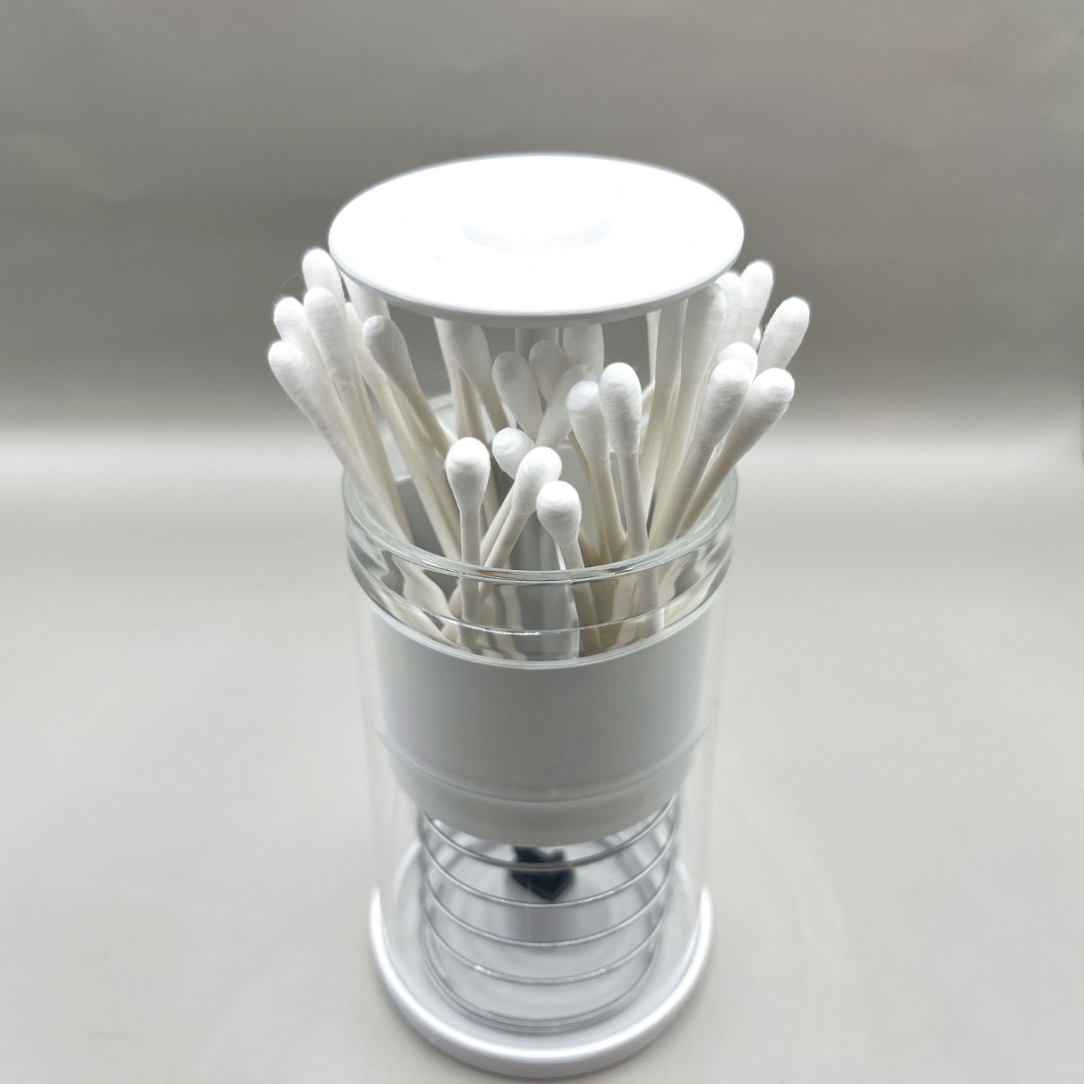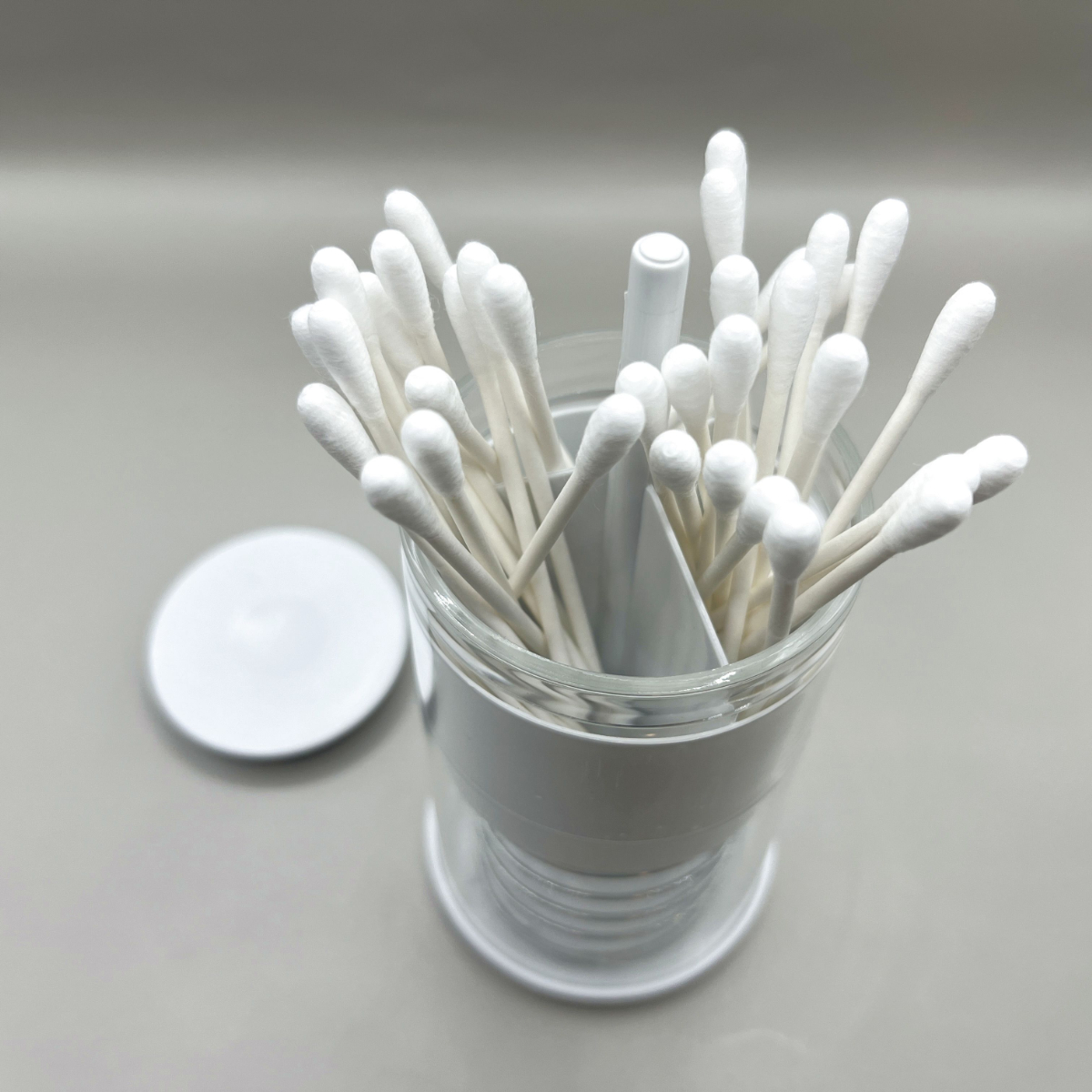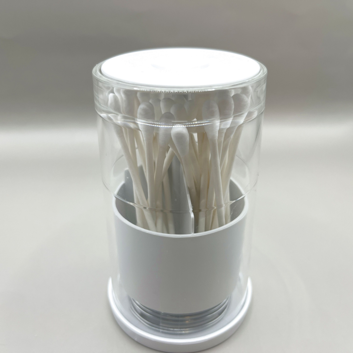 詰め替え方法もとても簡単で、上のフタは取り外し可能。綿棒をそのままポンポン入れていけます。