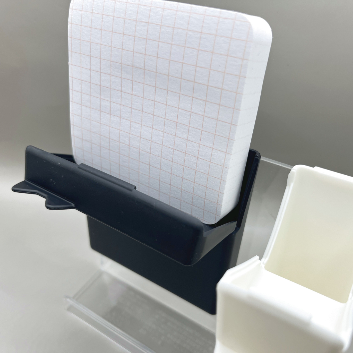 しかも、フックに掛けたままフタを開閉できて、そのまま中のふせんを取り出せるのがとても便利。「ちょっとメモしたい」ときに、サッと使える動線がちゃんと考えられています。