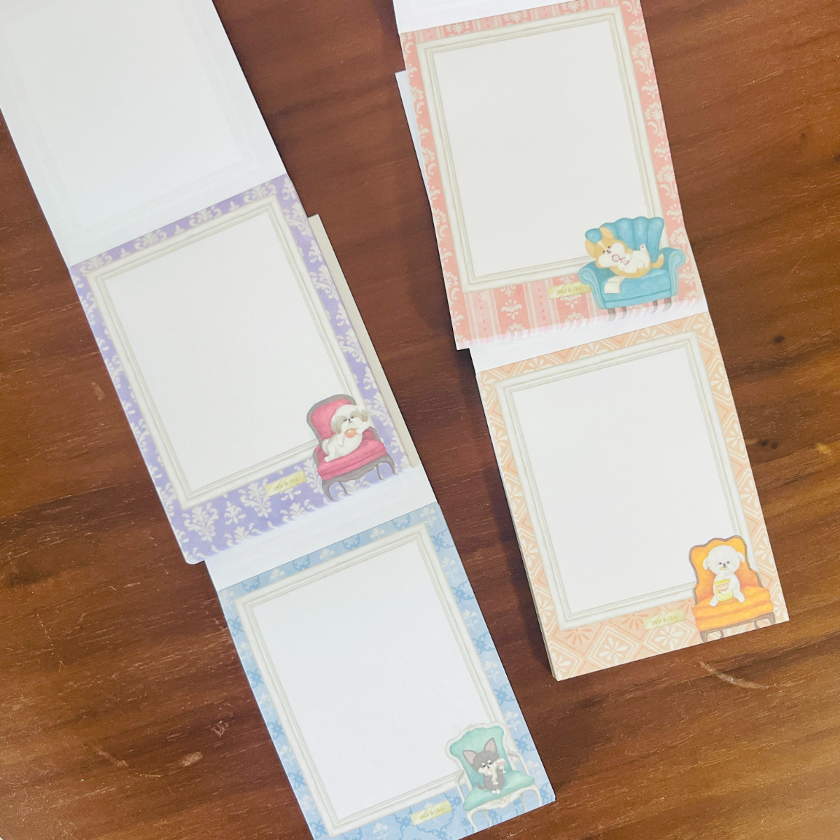 今回購入したのは、セリアの「クロスメモ イヌ&イス」。サイズは100×75mmで、メモや伝言に使いやすいコンパクトサイズです。