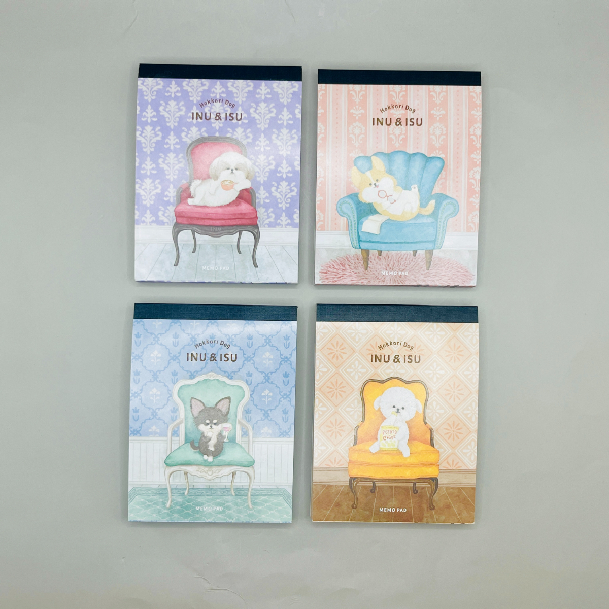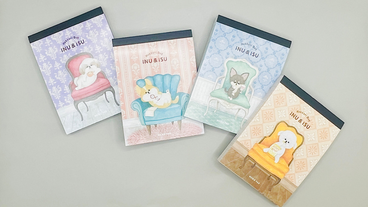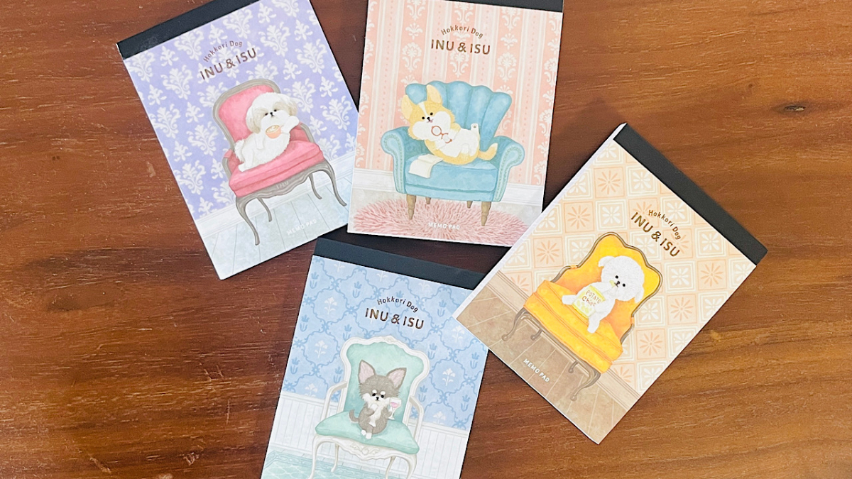 セリアの「イヌ&イス」シリーズは、今回紹介したクロスメモのほかにも、リングノートや付箋、シールなど幅広く展開されています。