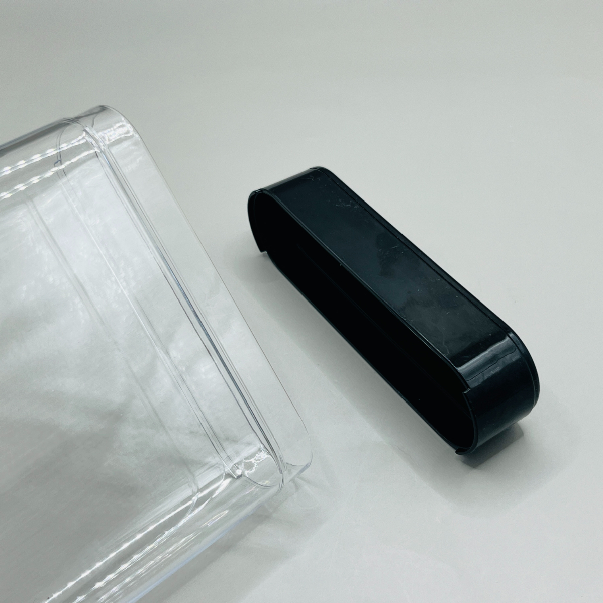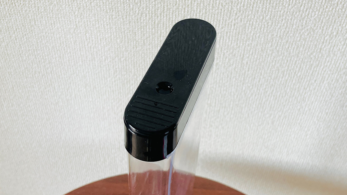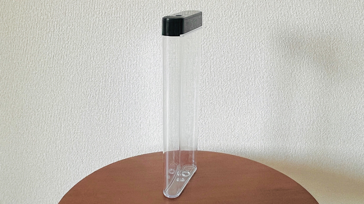 まず見た目は、細長い筒型のクリアケース。中身が見える透明ボディにブラックのフタがついた、シンプルでスタイリッシュなデザインです。