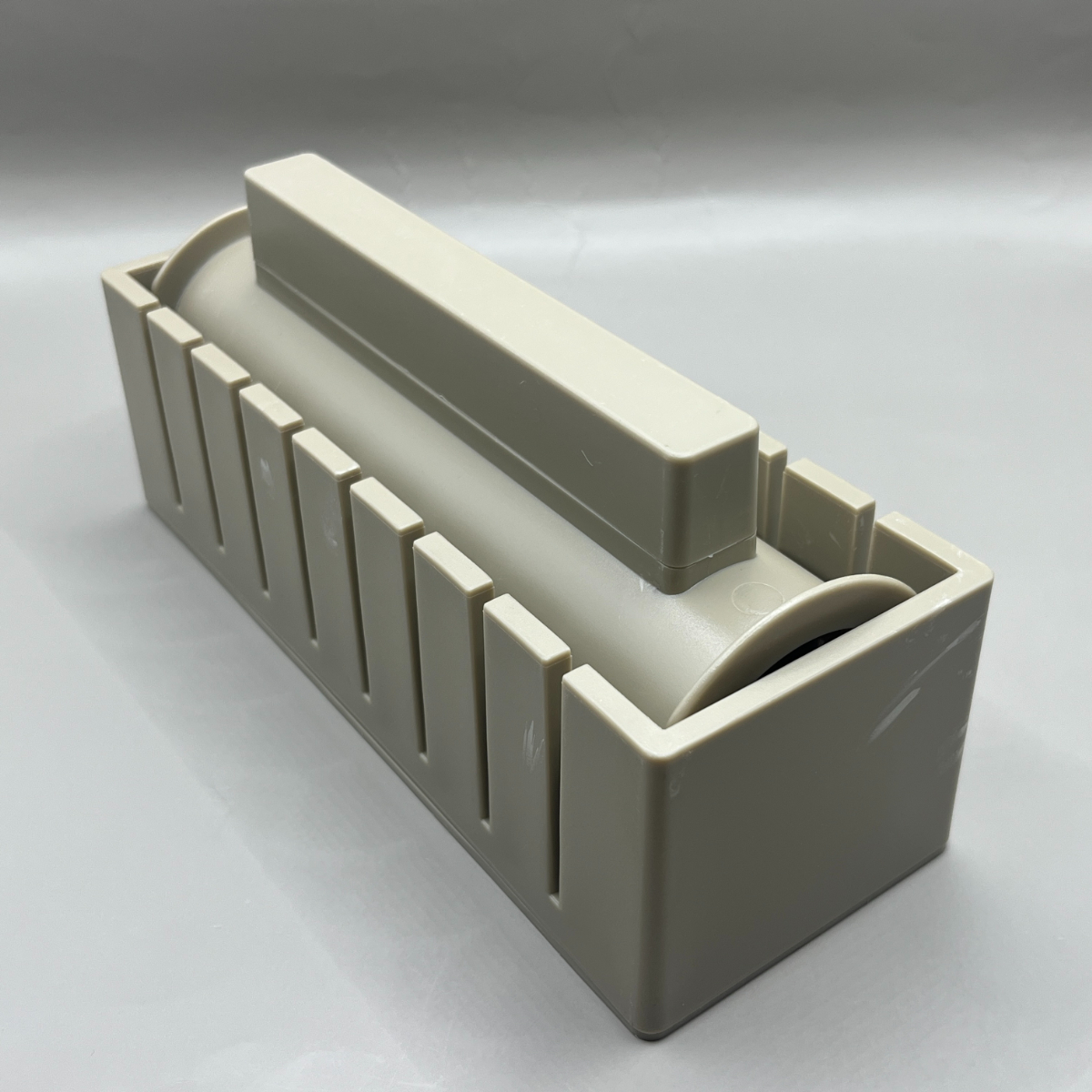 さらに側面にはカット用のガイドが付いていて、均等なサイズに切り分けられるのも嬉しいポイント。ベージュカラーの落ち着いた見た目で、キッチンになじみやすいデザインも好印象です。