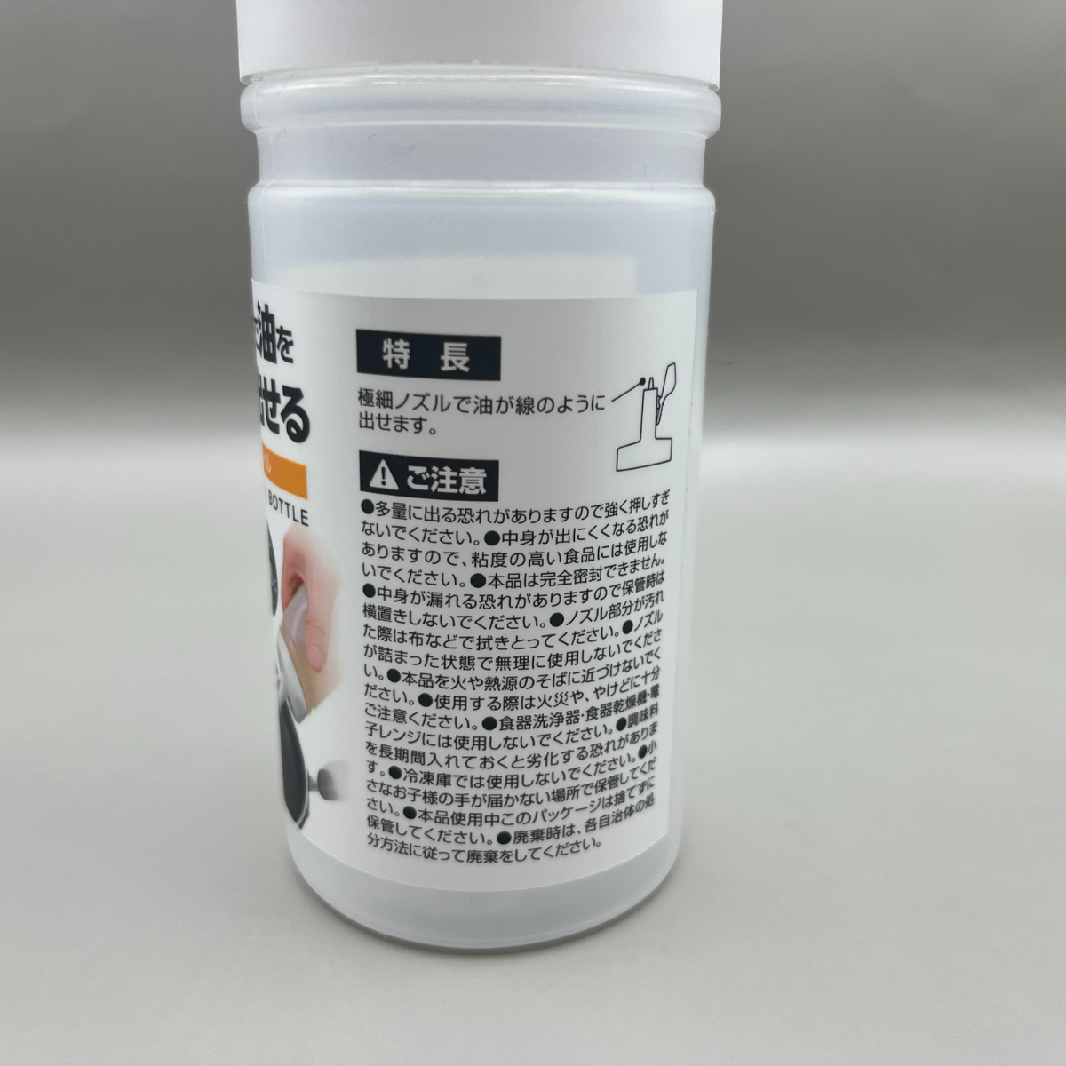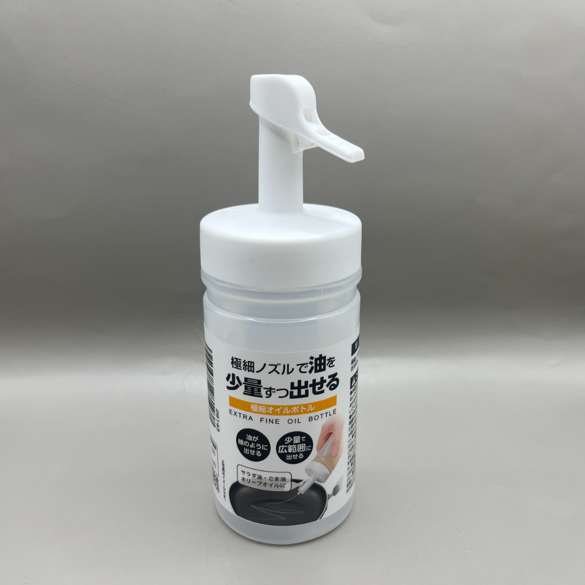 今回購入したのは「極細オイルボトル」。半透明でシンプルなデザインのボトルで、容量は約250mLと日常使いにちょうどいいサイズ感です。