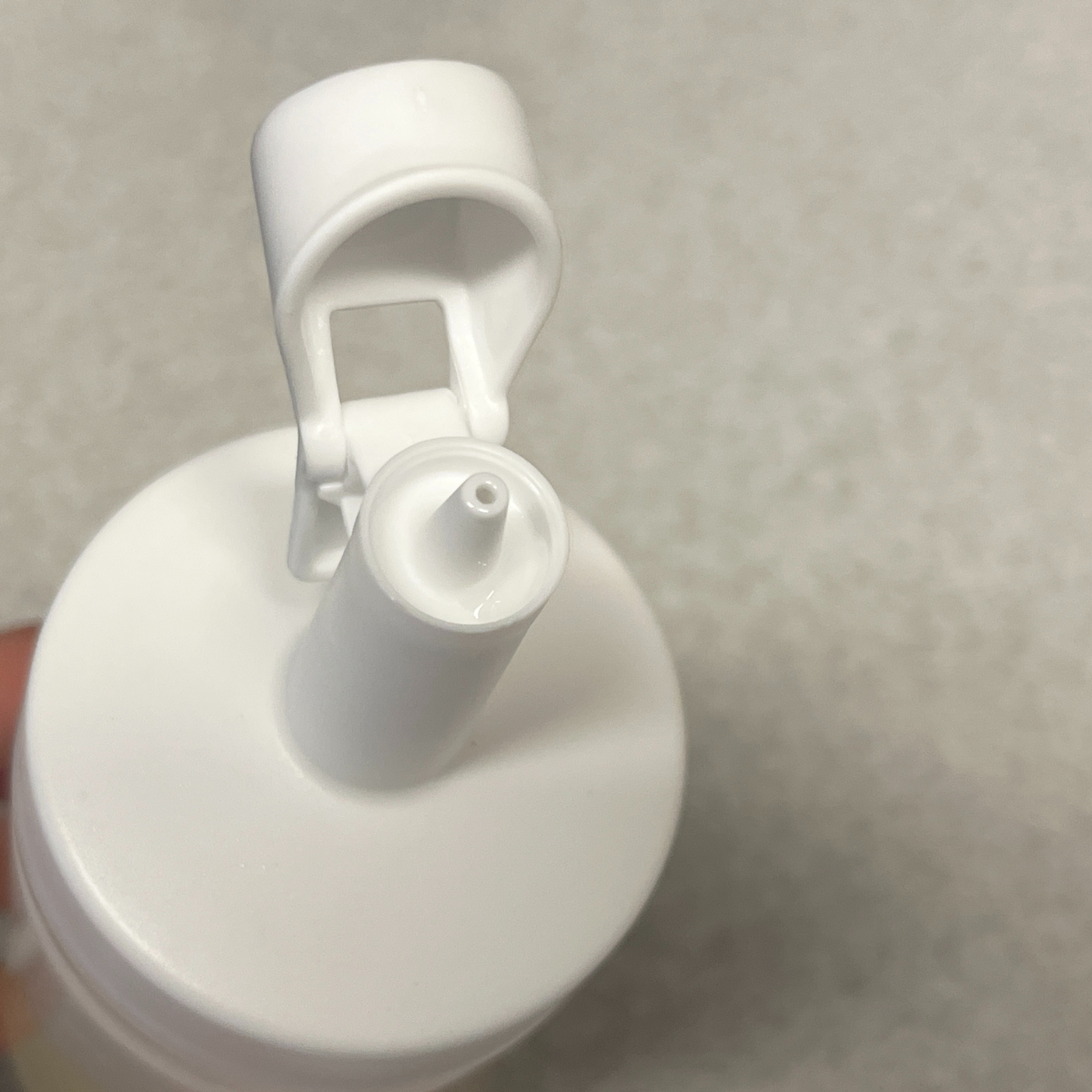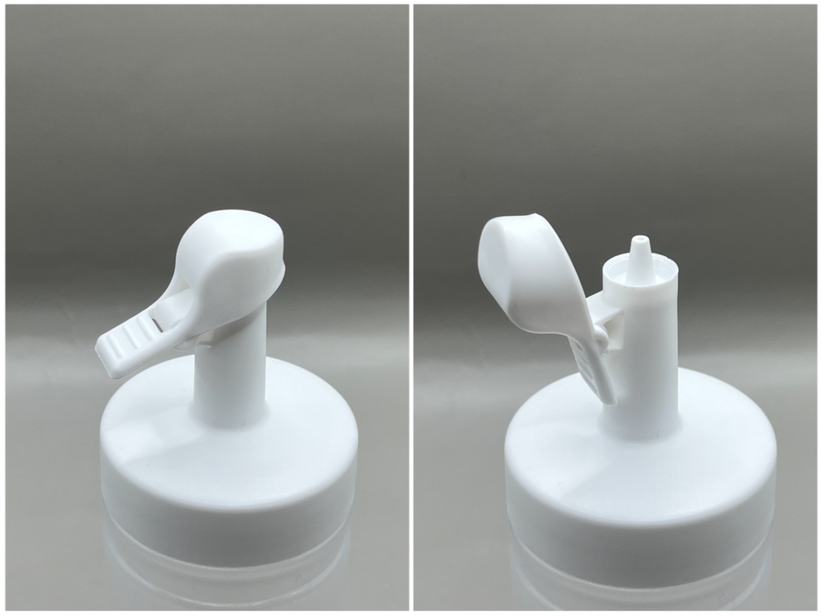 キャップ部分はワンタッチで開閉できる仕様で、指で軽く押すだけでパチンと開きます。フタは本体と一体型になっているので、外して使うタイプと違い、うっかり落としてしまう心配もありません。