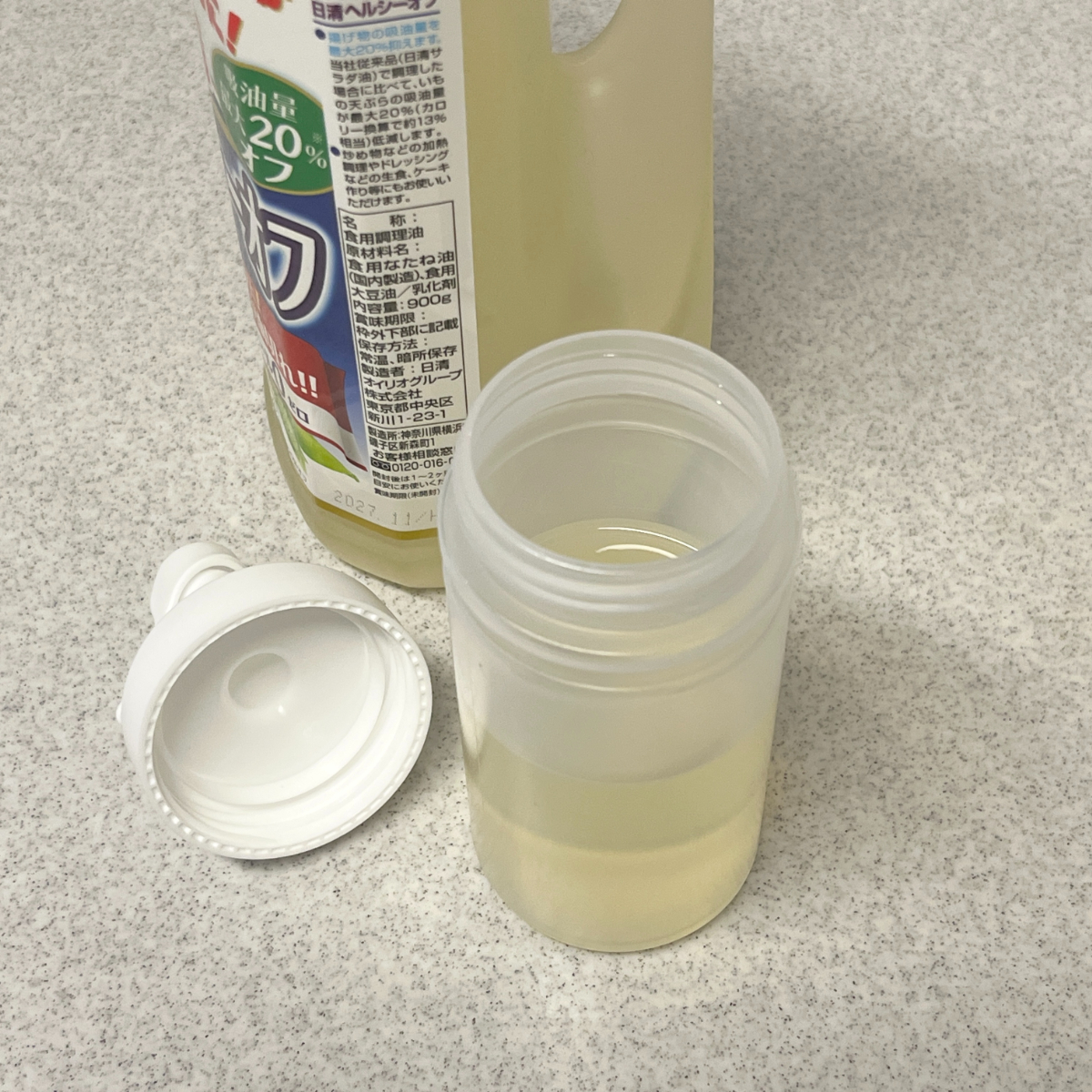 使用前に容器をしっかり洗って乾かし、サラダ油を詰め替えてから使ってみました。