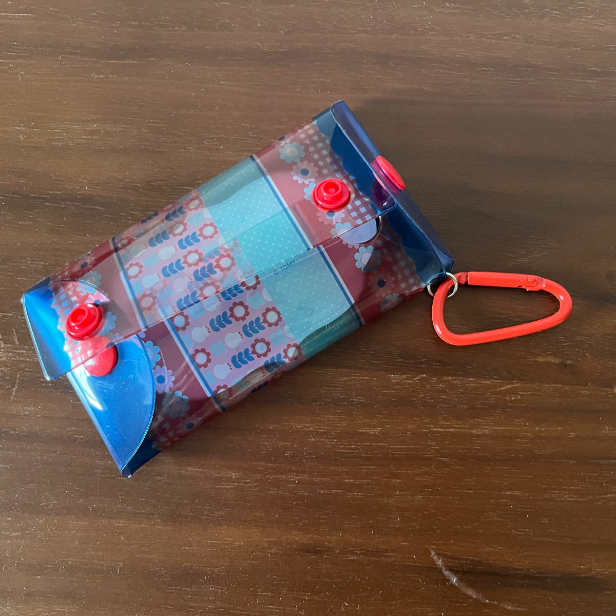 まず最初に目を引いたのが、赤をアクセントにしたレトロポップな配色のクリアポーチ。