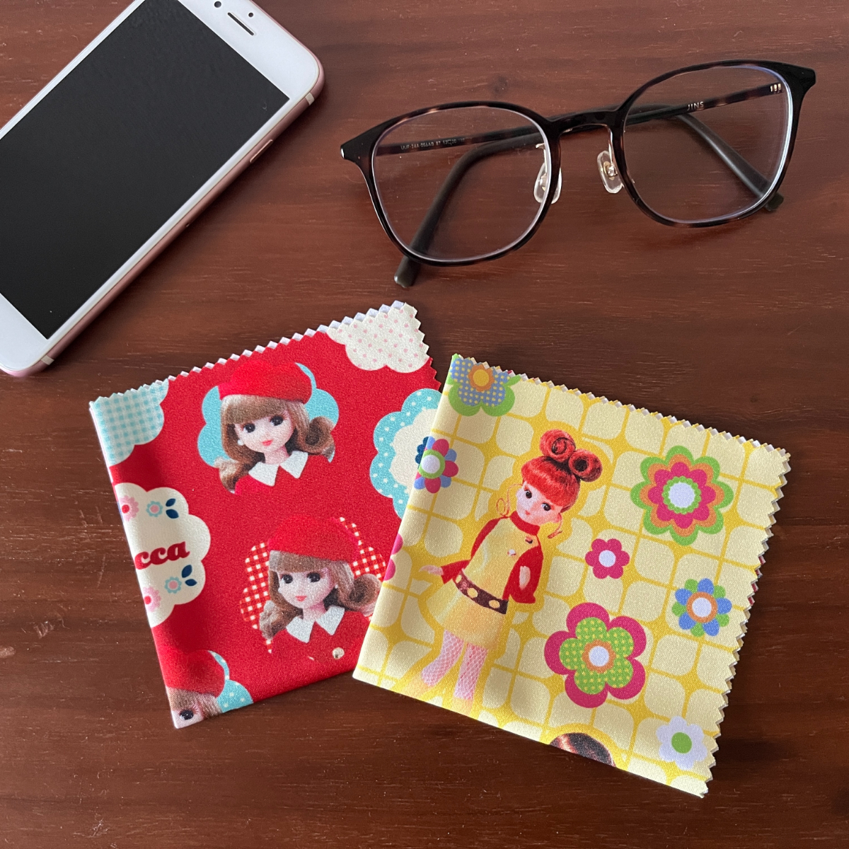 メガネやスマホの画面も可愛くケアできるレトロポップ柄のリカちゃんメガネ拭き