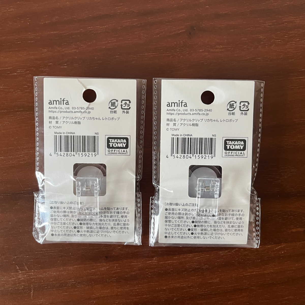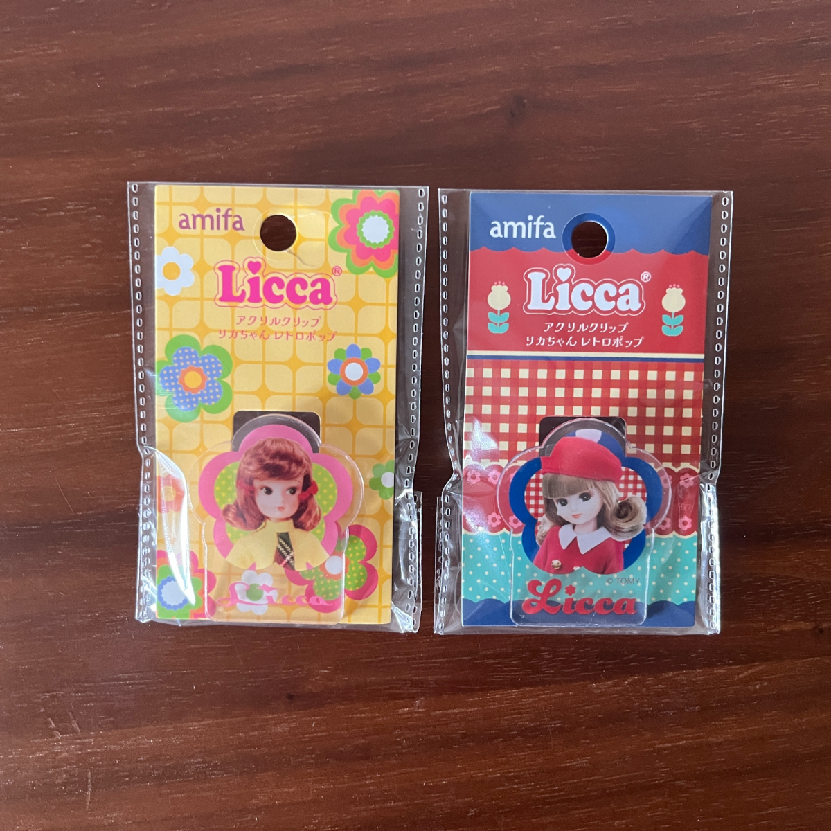 思わず2種類揃えたくなるアクリルクリップは、レトロポップなリカちゃんのデザインがそのまま楽しめるアイテム。