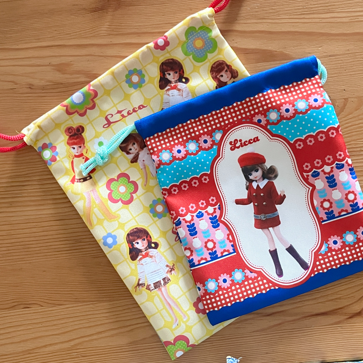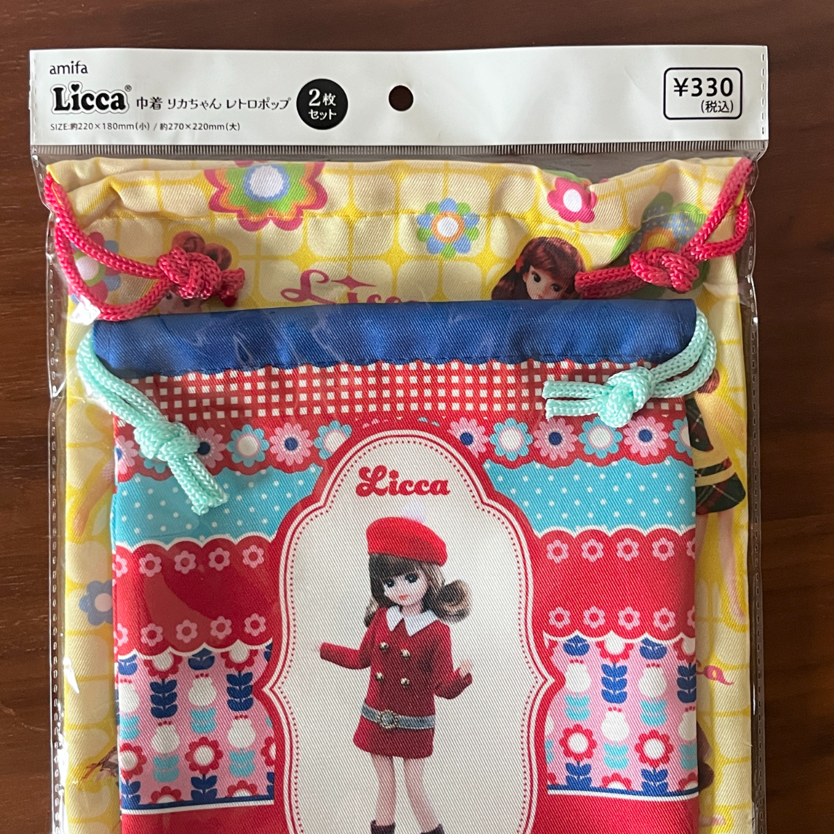 サイズ違いで使い分けできて実用性も高いリカちゃんのレトロポップ巾着セット